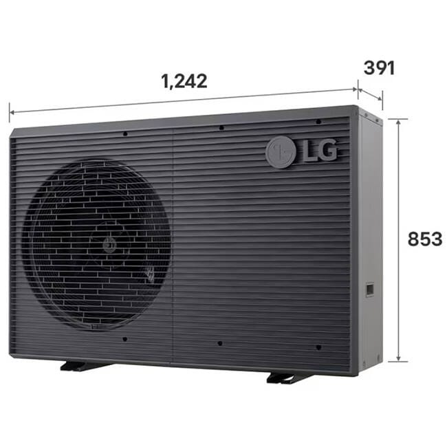 De LG Therma-V Monobloc S lucht/water warmtepomp werkt op 230 V (1-faseaansluiting) en is geschikt voor buitenopstelling. Met een geluidsvermogen van slechts 57 dB(A) en een geluidsdrukniveau van 47 dB(A) op één meter werkt de Therma V Monobloc S zeer stil. Het werkbereik van −25 °C tot +48 °C houdt je huis warm bij ijzige vorst en koel tijdens tropische hitte, terwijl hij in verwarmingsmodus cv‑water tot wel 65 °C kan leveren.
